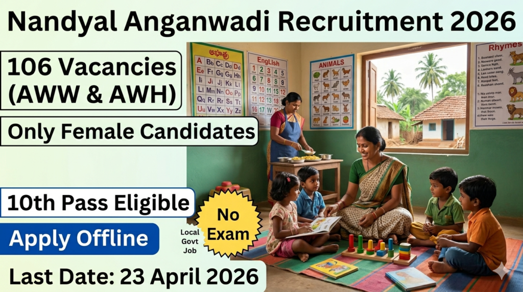 If you are searching for Anganwadi jobs in Andhra Pradesh 2026, then this Nandyal Anganwadi Recruitment 2026 is a great opportunity for female candidates looking for government jobs in Nandyal district. As per the official notification, applications are invited for Anganwadi Worker (AWW) and Anganwadi Helper (AWH) posts in multiple projects under Women Development & […]
