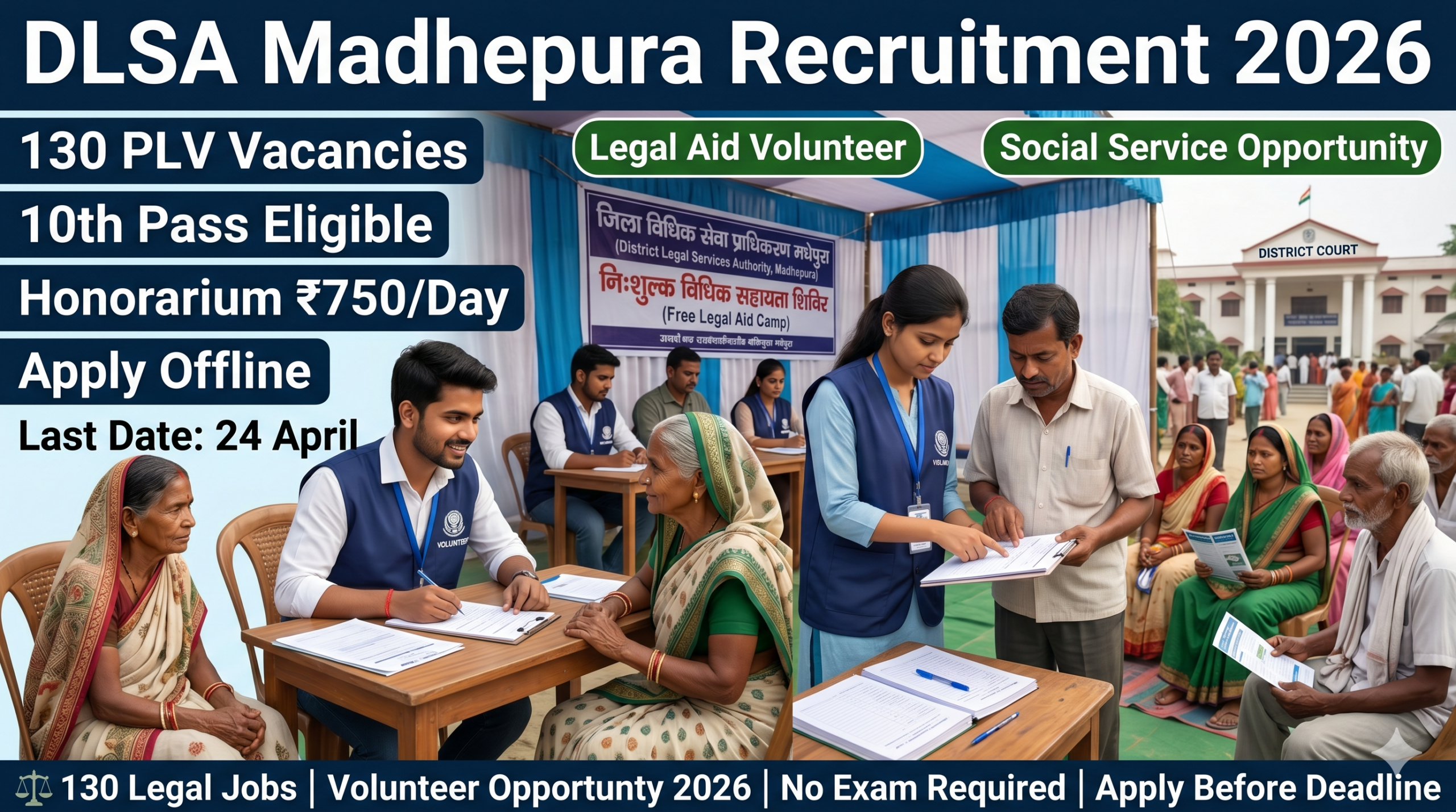 DLSA Madhepura Recruitment 2026: Apply Offline for 130 Para-Legal Volunteer Posts